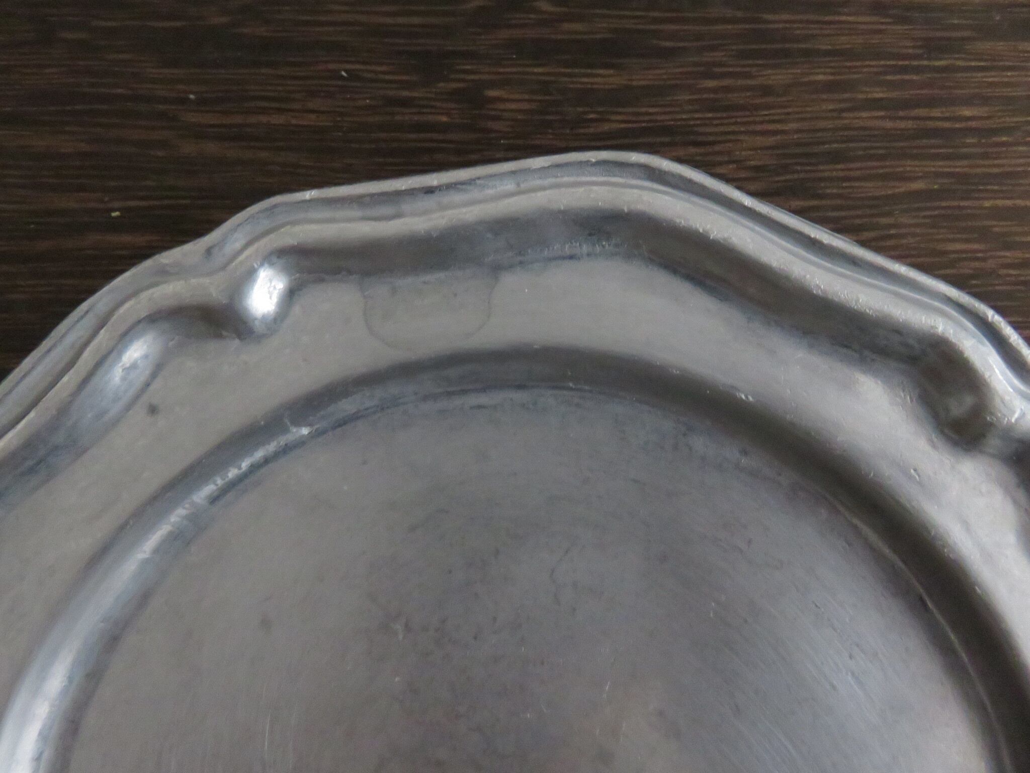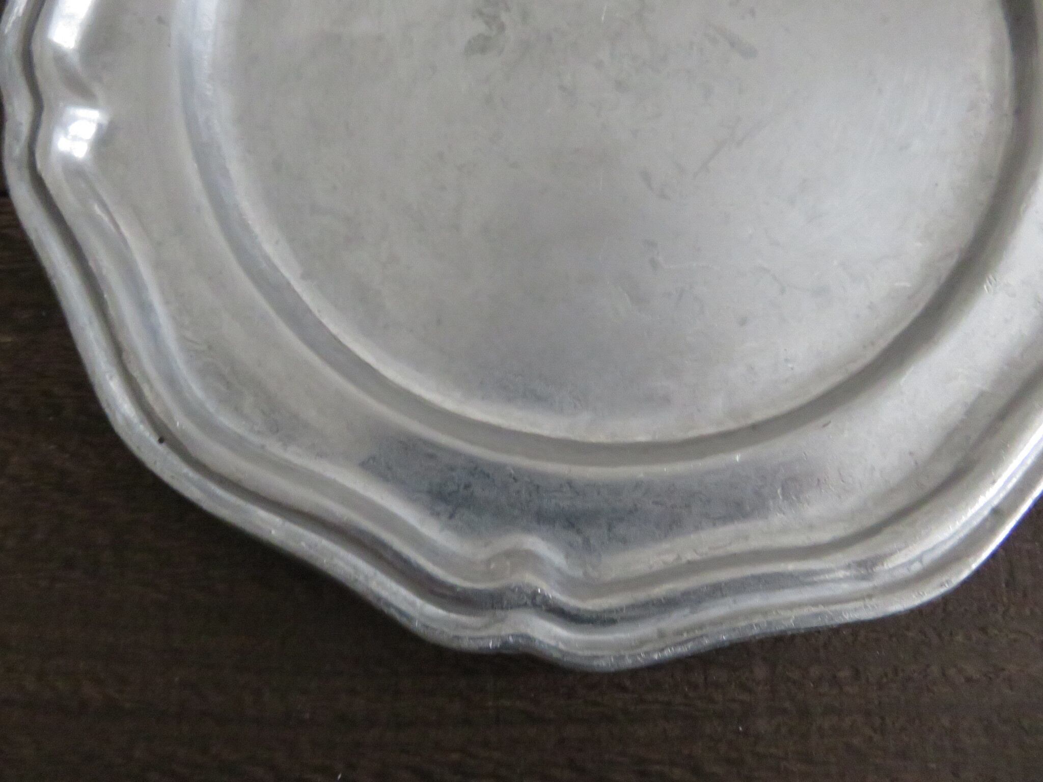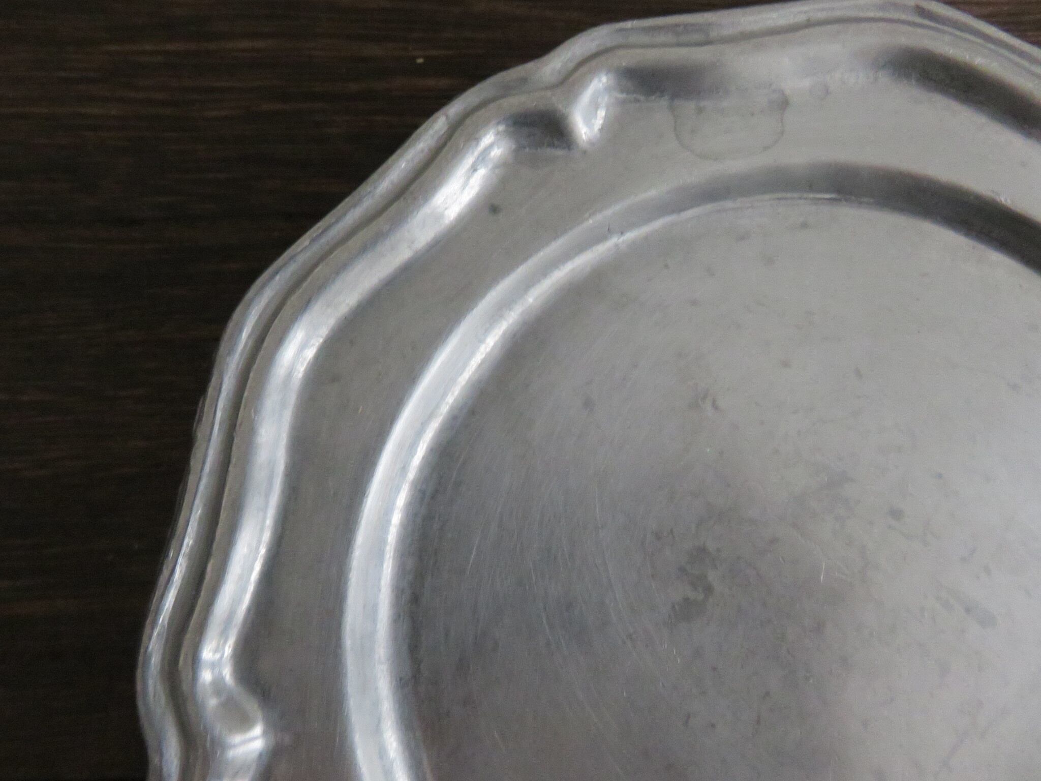 ピューター皿は、年代を経た細かい傷あと・汚れなどが見られます。