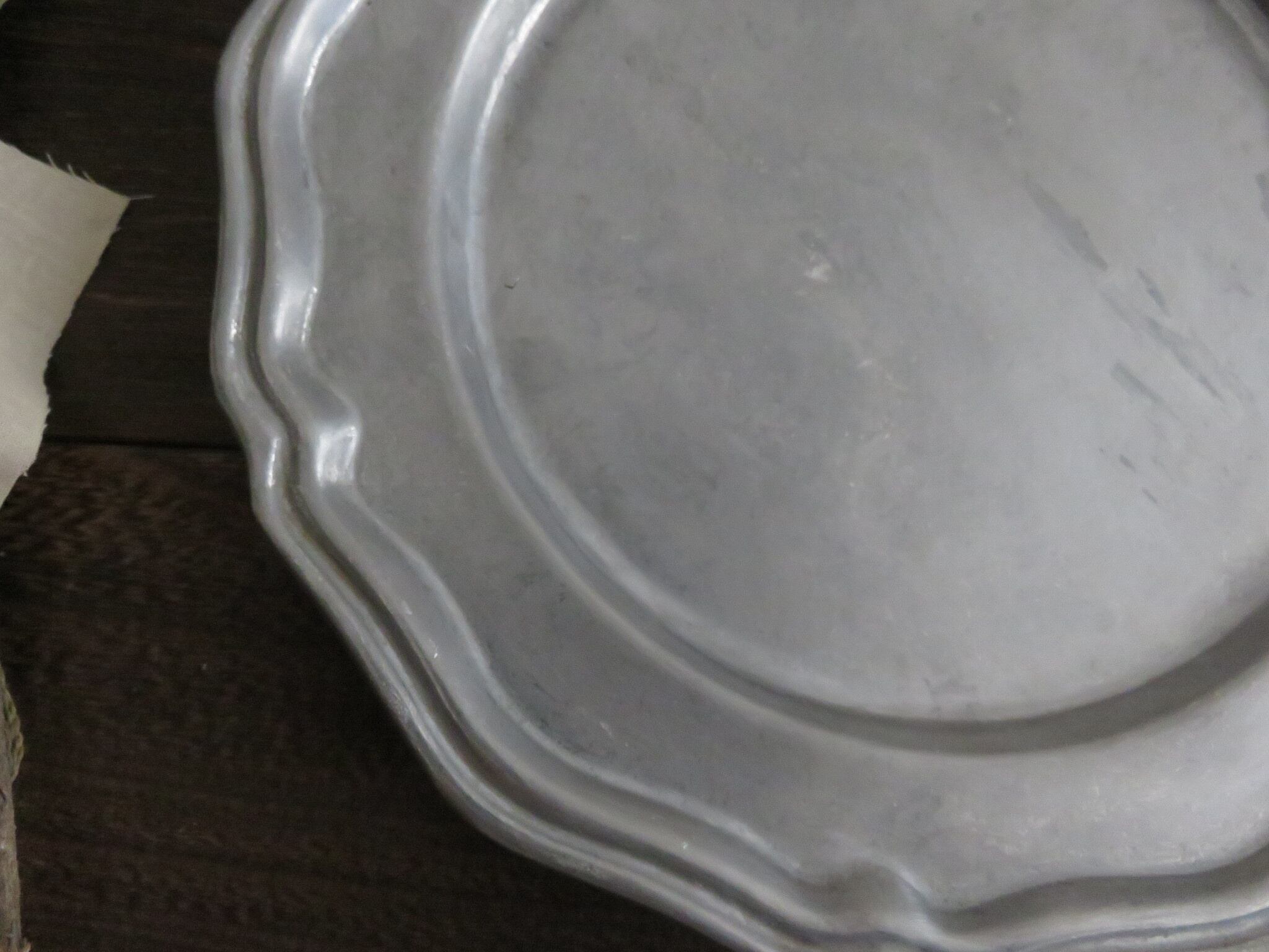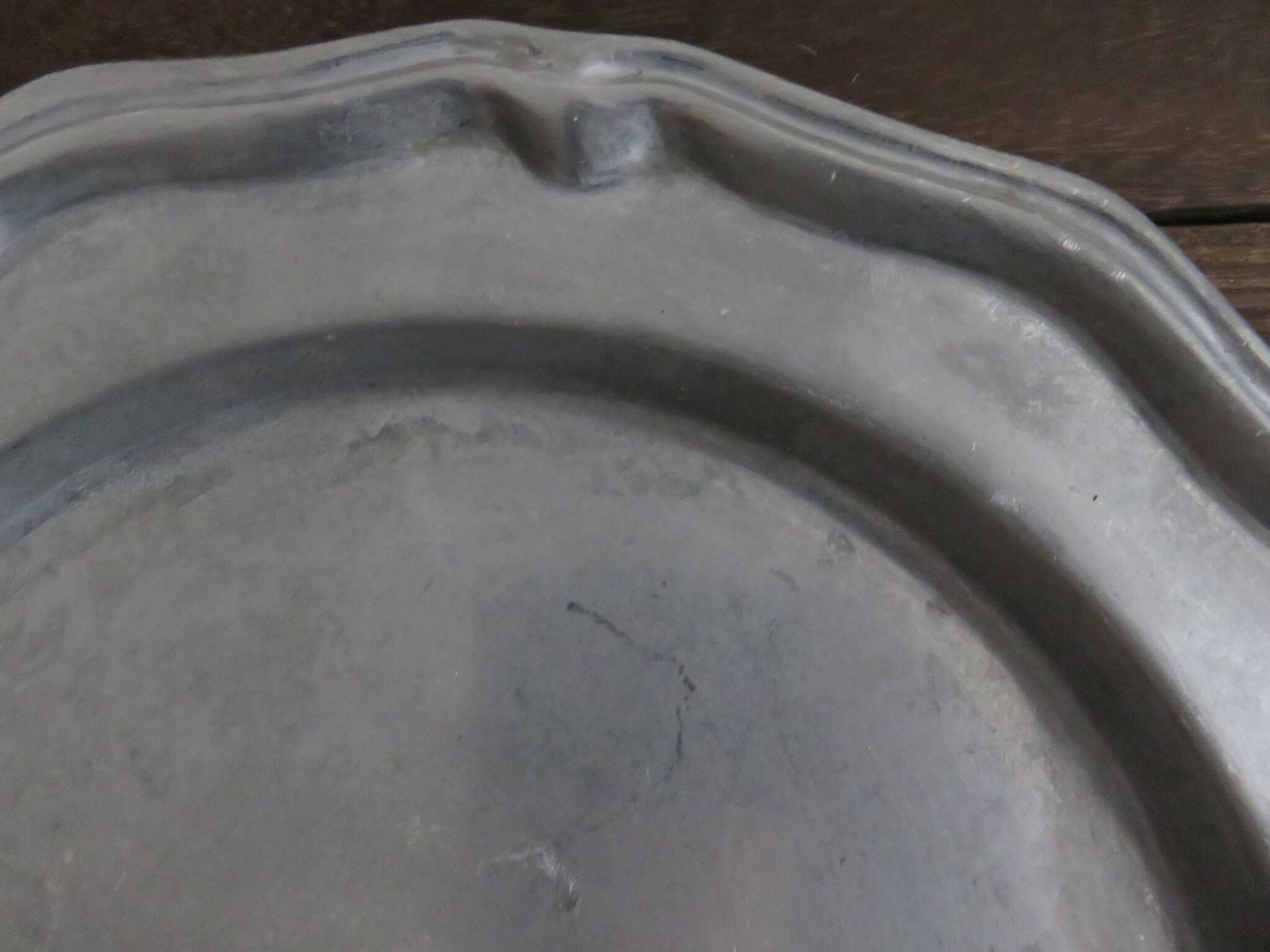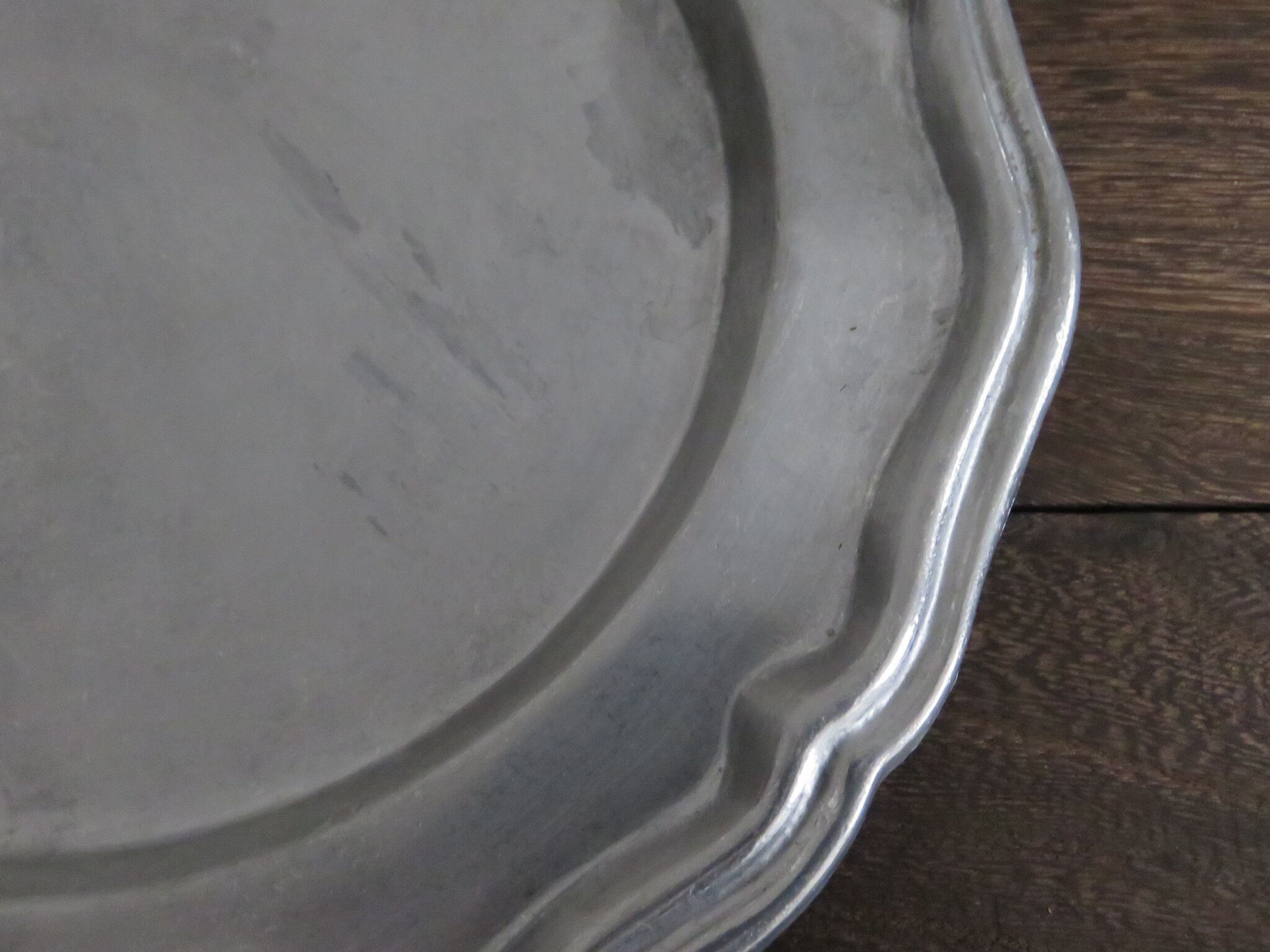 ピューター皿は、年代を経た細かい傷あと・汚れなどが見られます。