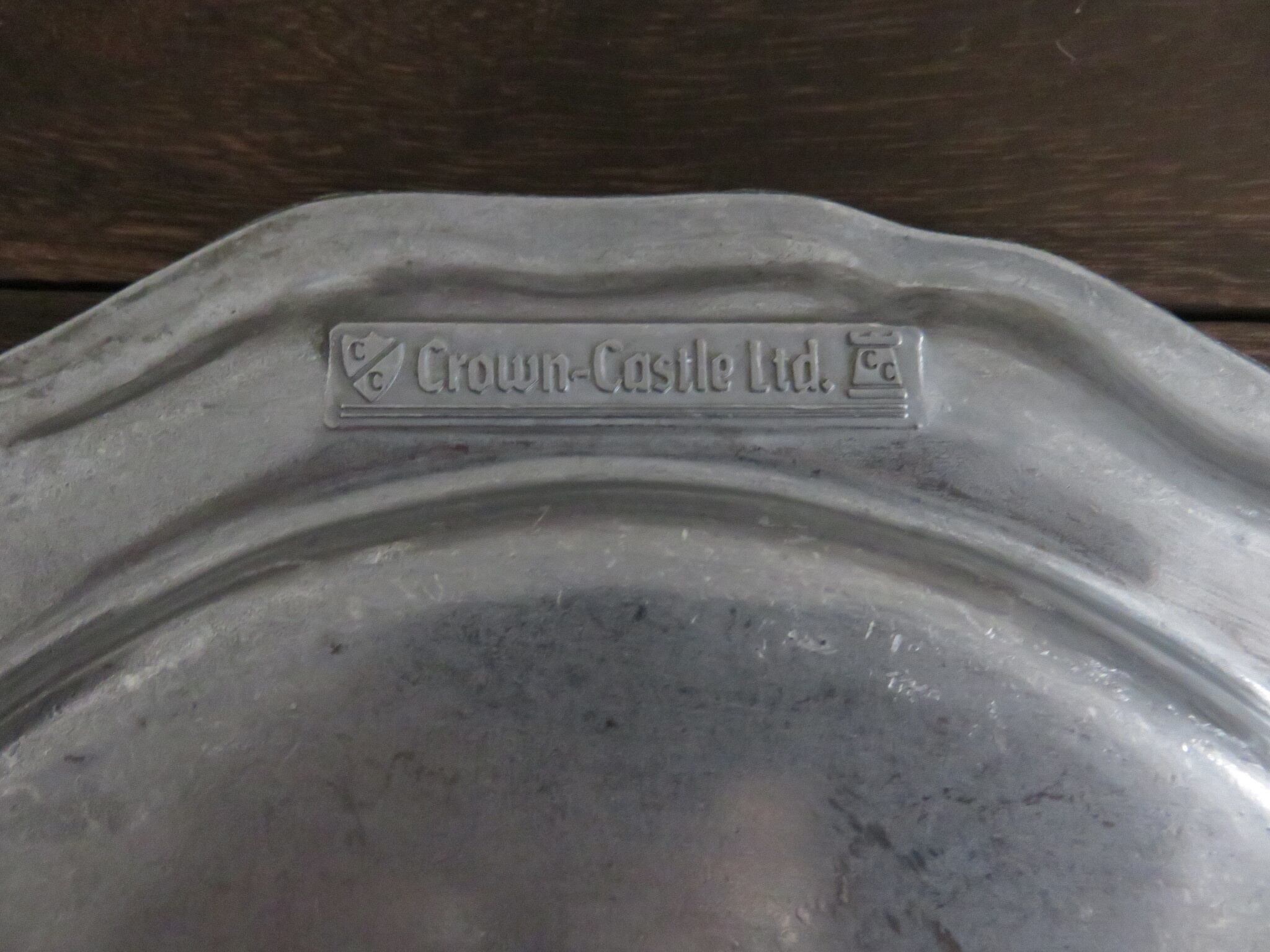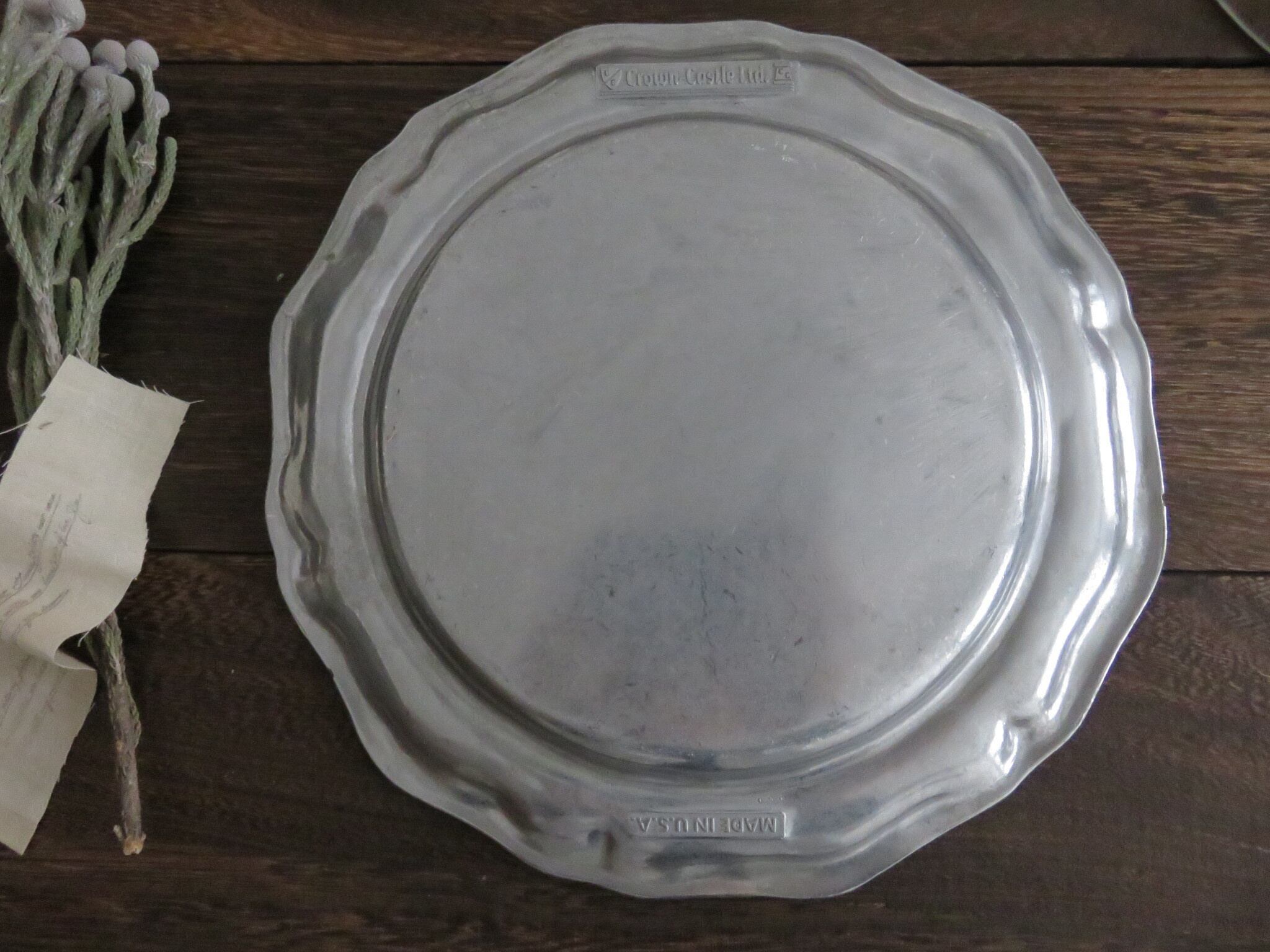 Crown Castle(クラウンキャッスル)社のビンテージピューター皿とガラスドーム組み合わせです。