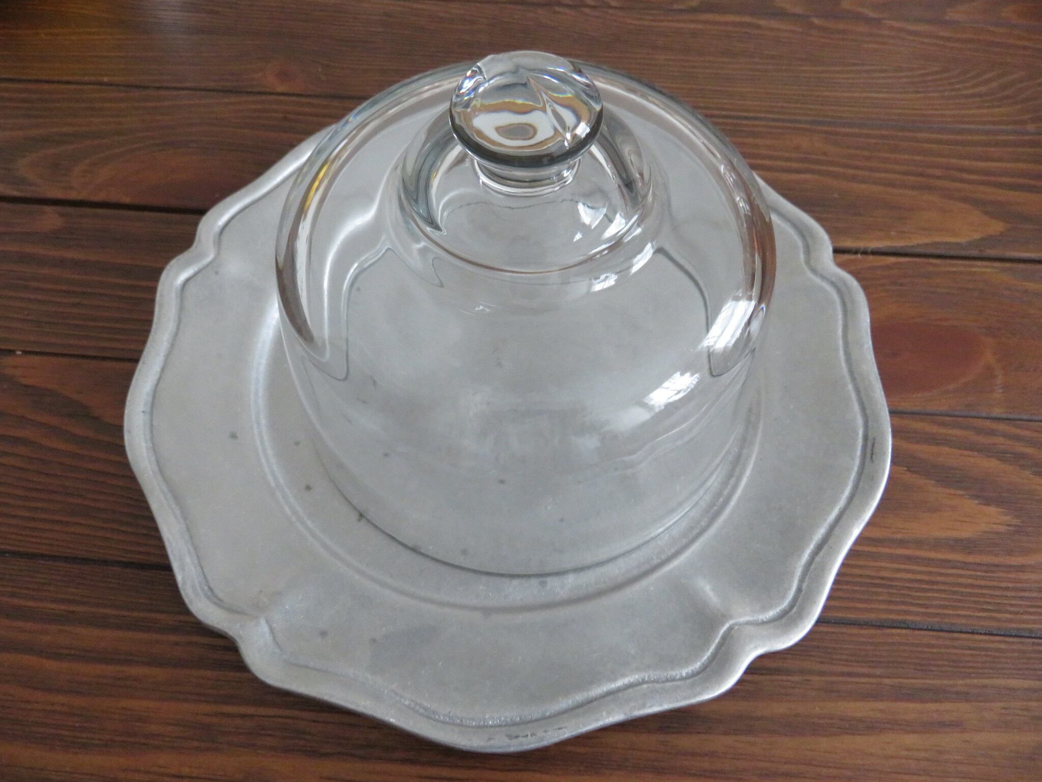 花リムピューター皿のアンティークケーキドーム【42】