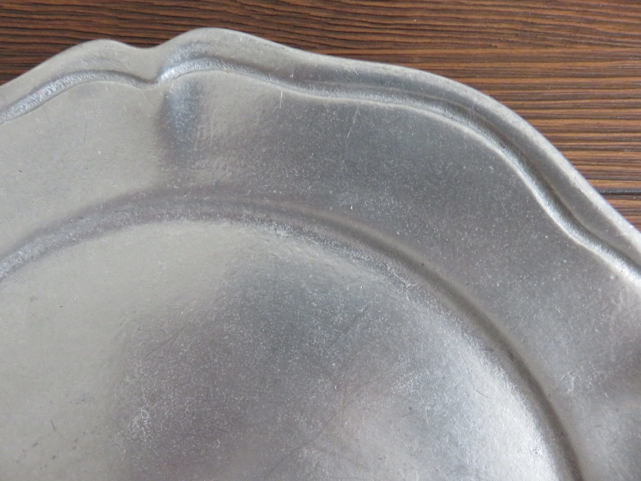 ・ピューター皿は、年代を経た細かい傷あと・汚れなどが見られます。