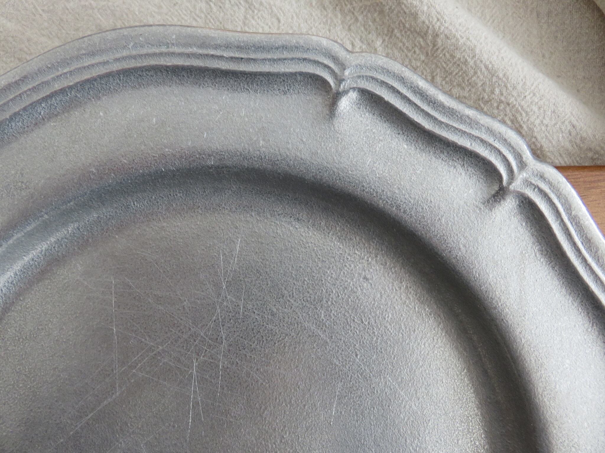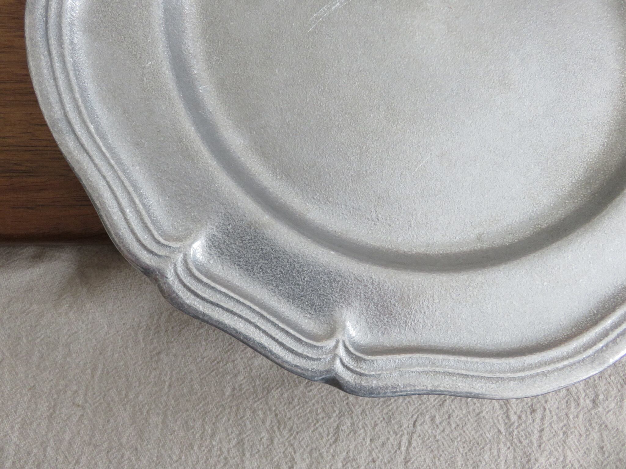 ピューター皿は、年代を経た細かい傷あと・汚れなどが見られます。