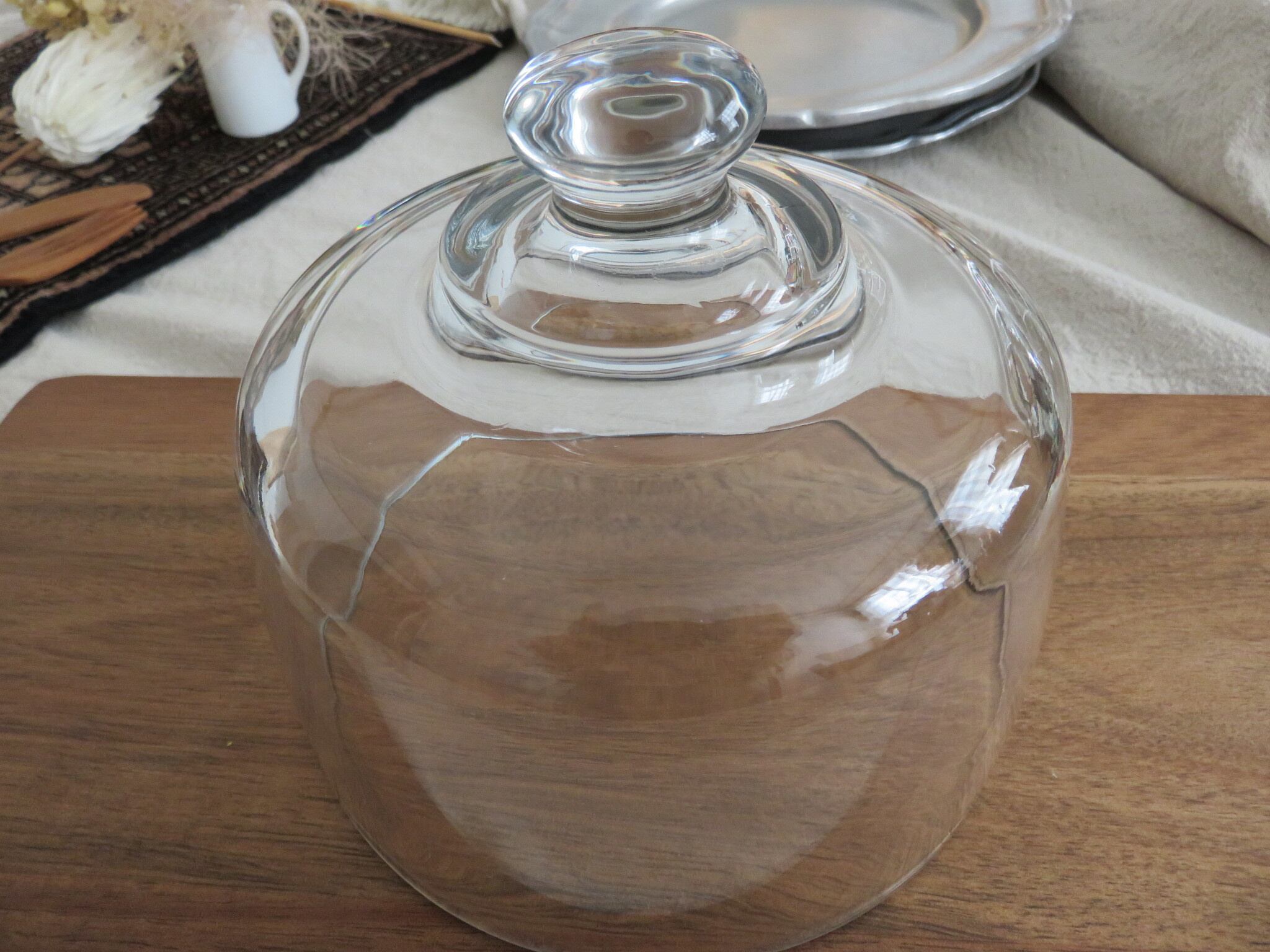 ガラスドームは、ピュータープレートの良さを引きたたせるように、形状や質感などにこだわり、厳選して選びました。(ひび割れやカケなどなくきれいな状態です)