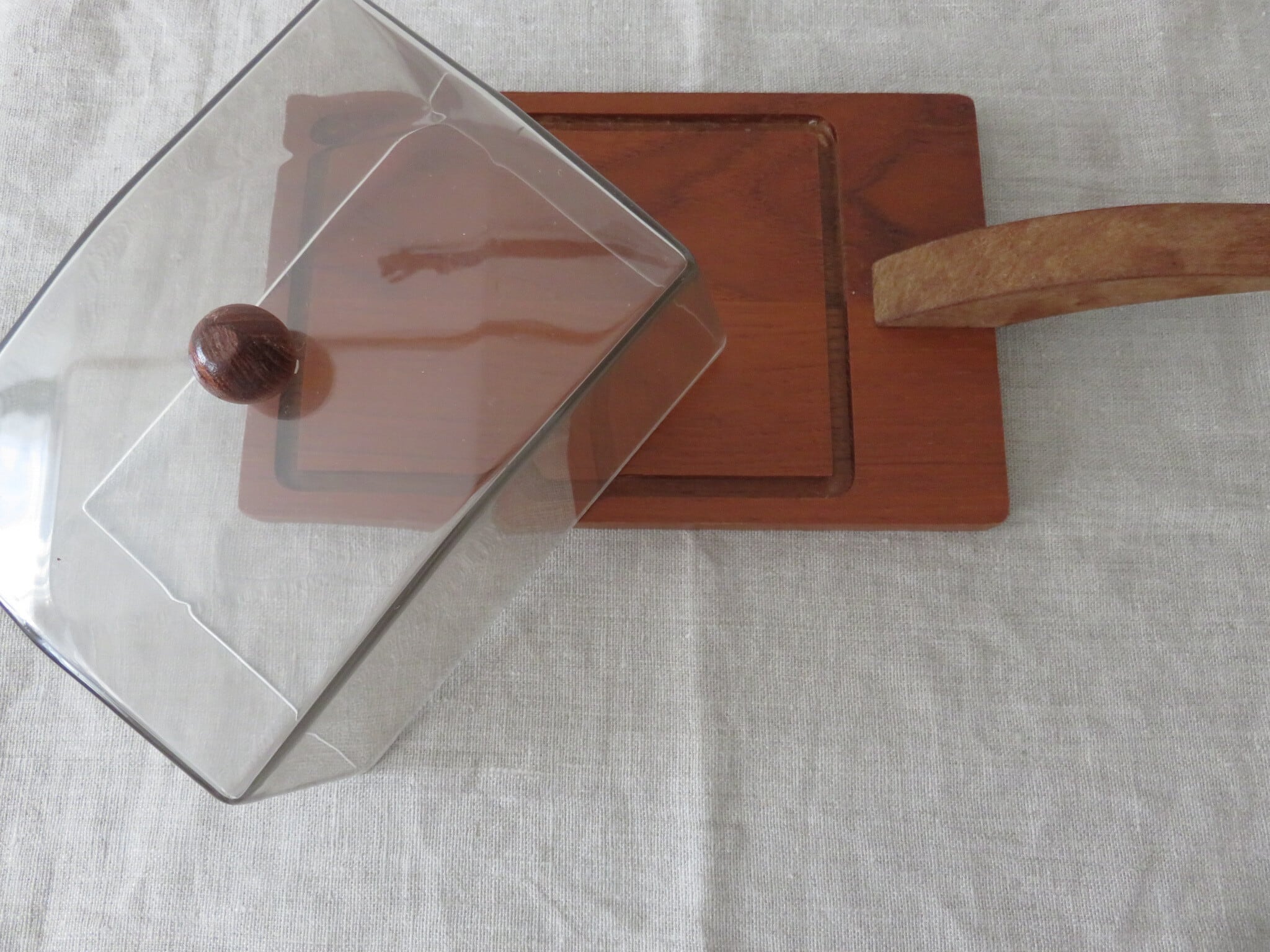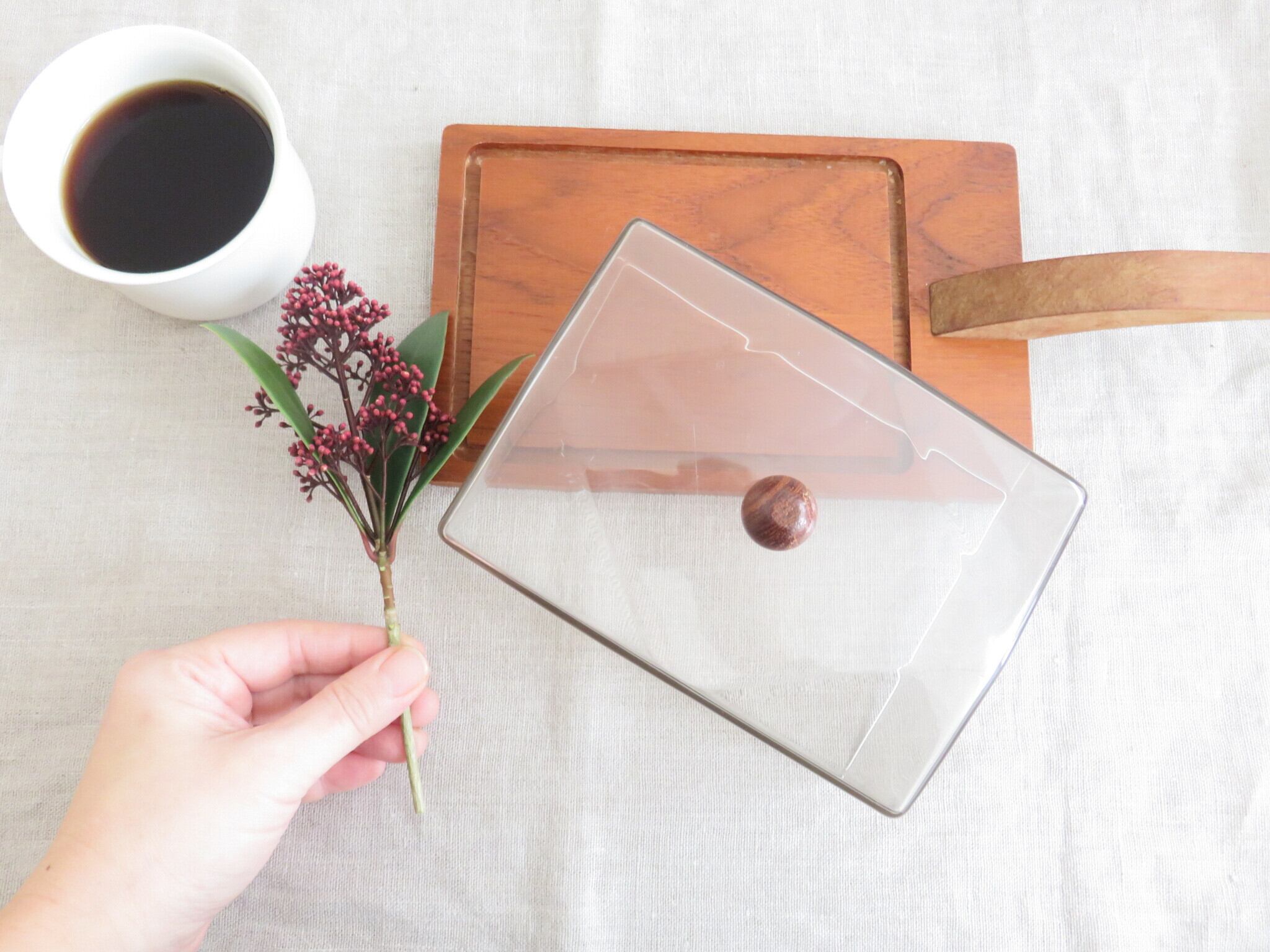 取っ手付のスクエア型。すっきりしたデザインの中にも、温かみを感じるケーキドームです。