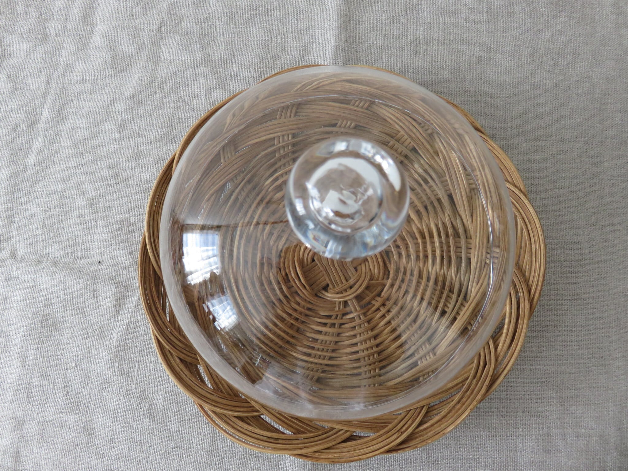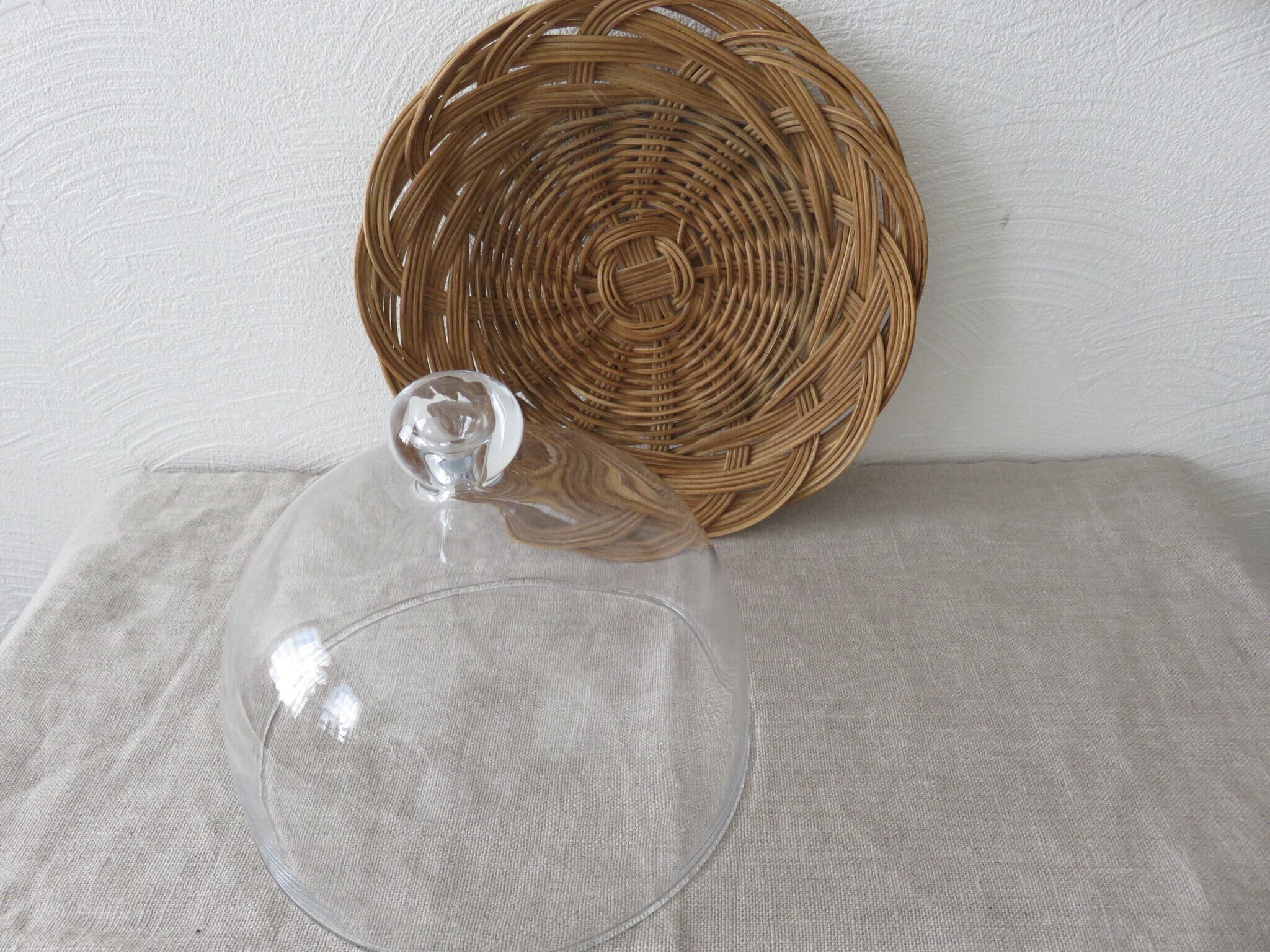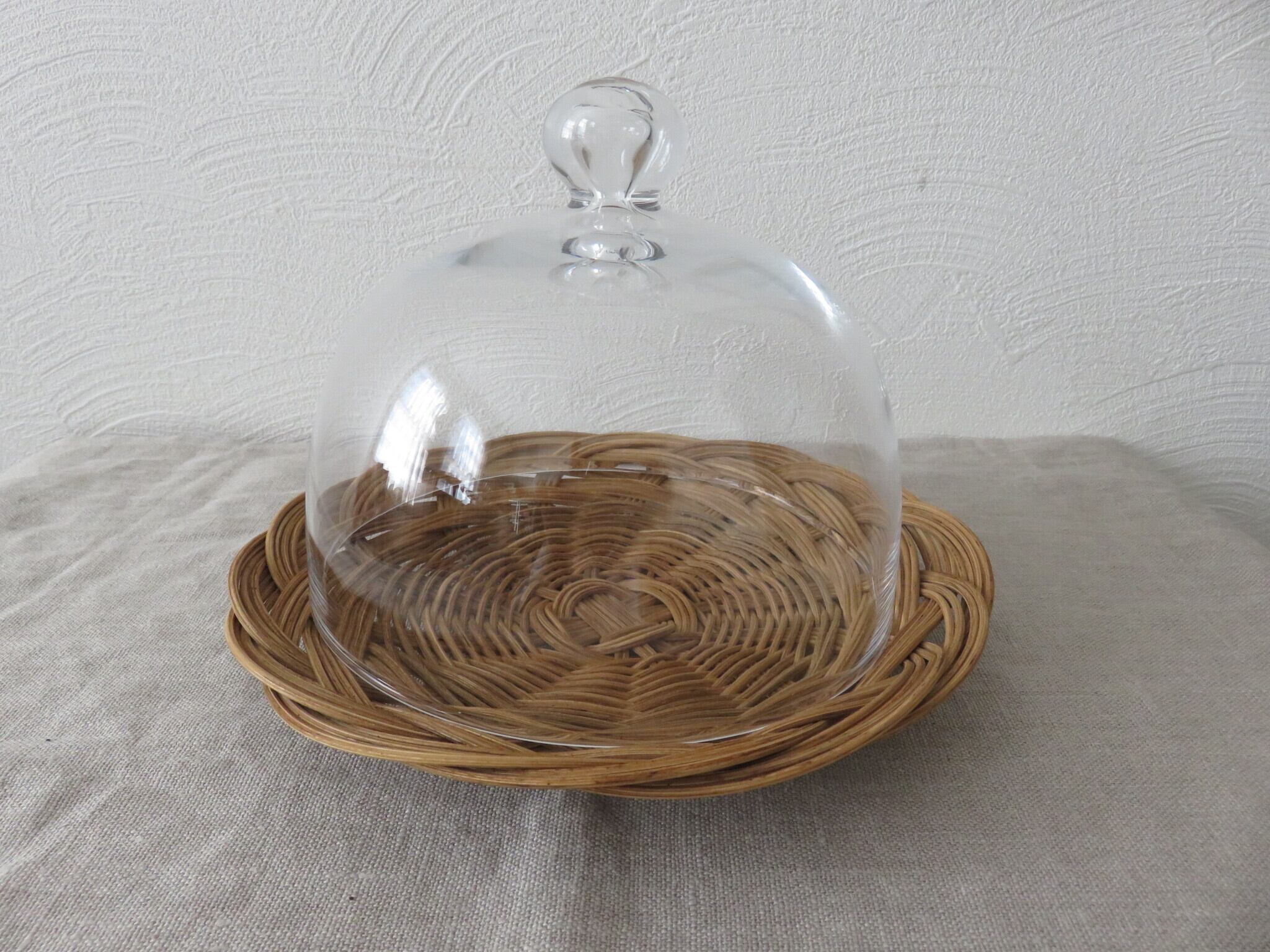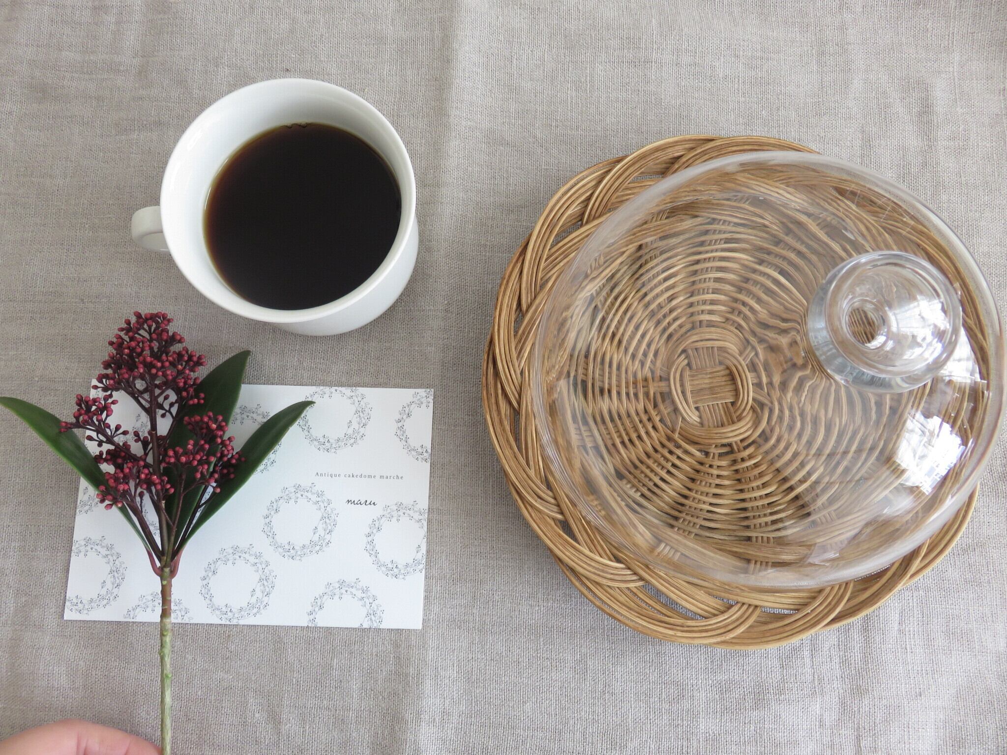 自然素材のラタンを使った花型トレイのケーキドームです。