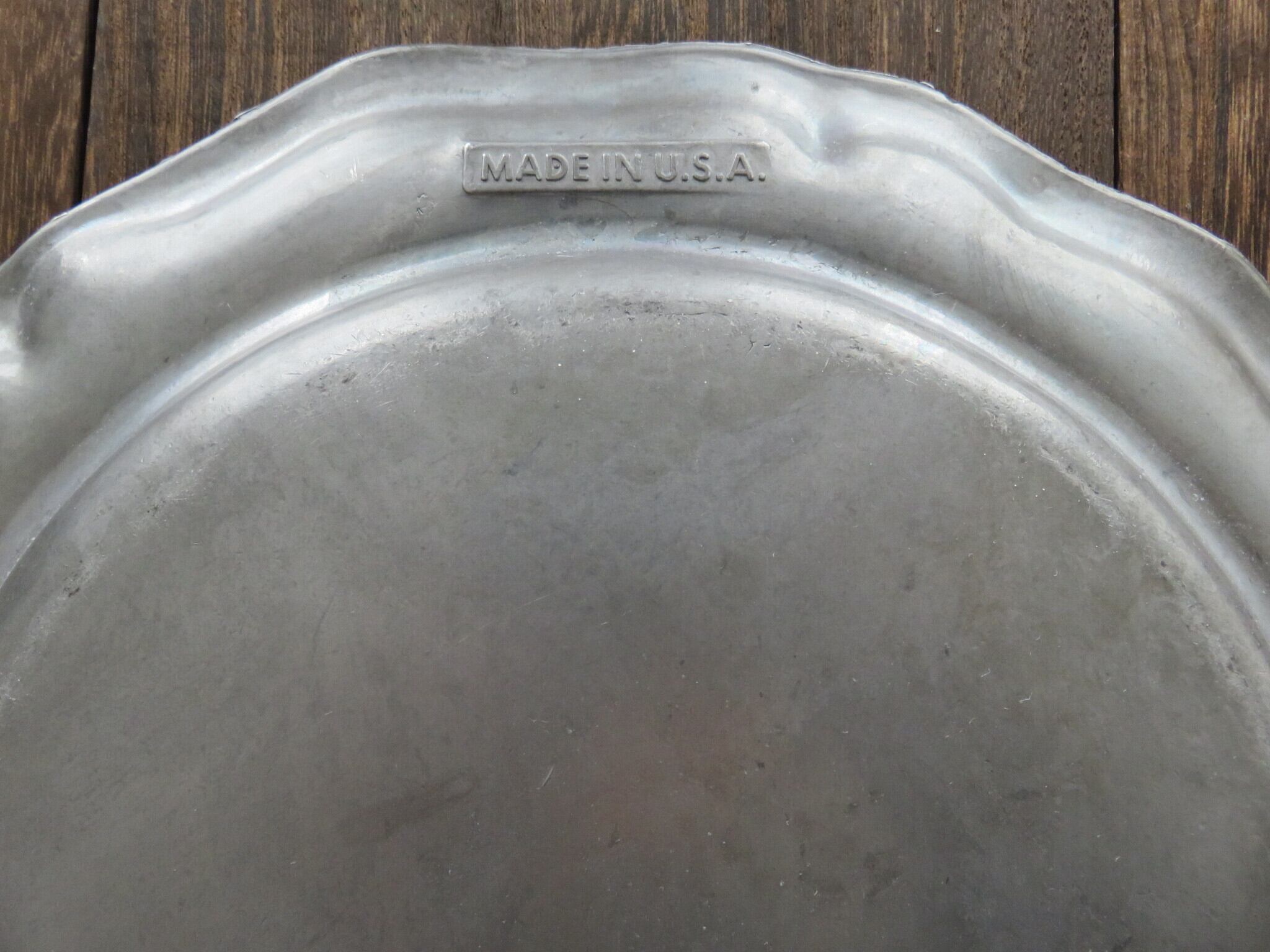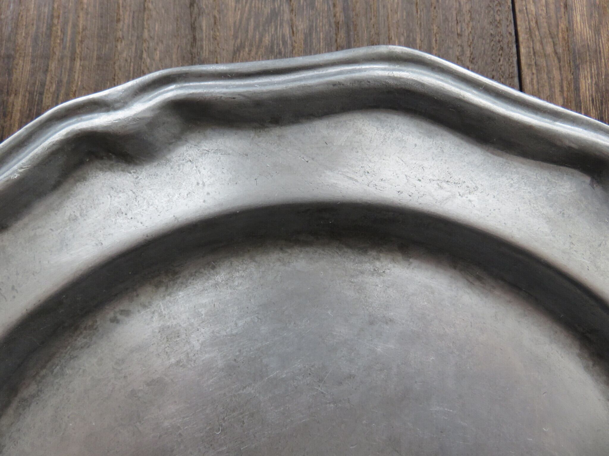 ピューター皿は、年代を経た細かい傷あと・汚れなどが見られます。