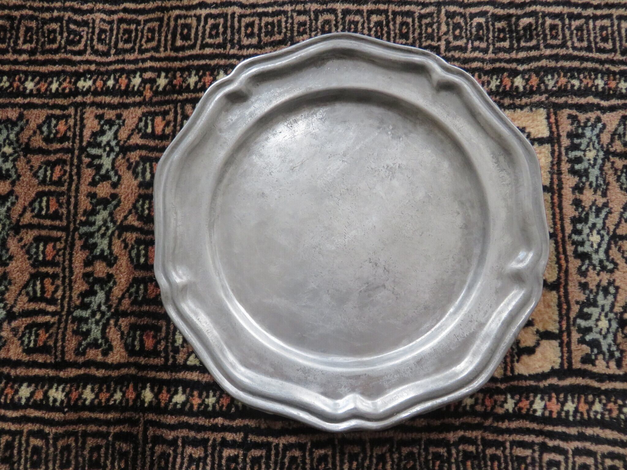 独特の光沢と存在感がある、ビンテージのピューター皿。