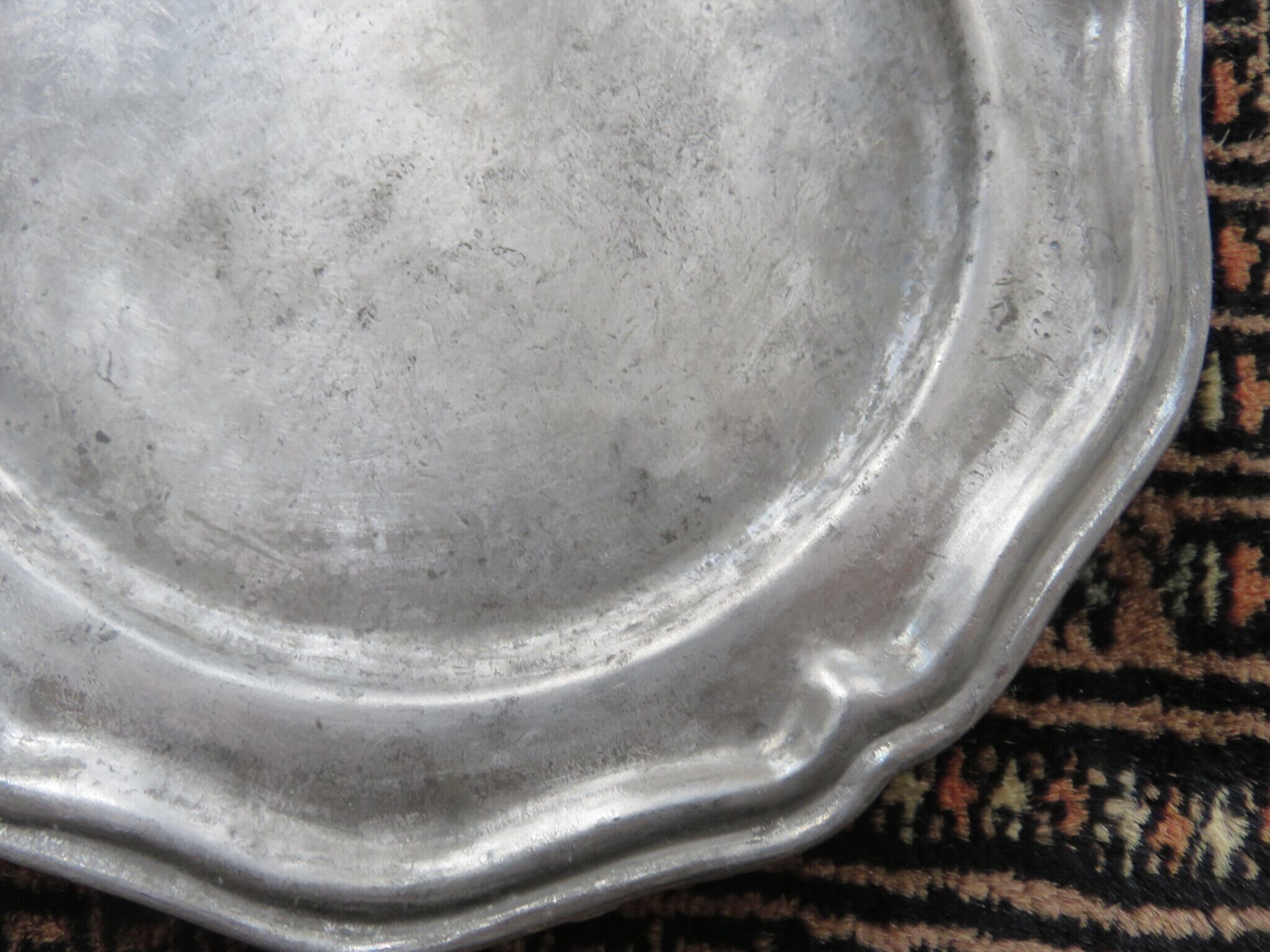 ピューター皿は、年代を経た細かい傷あと・汚れなどが見られます。
