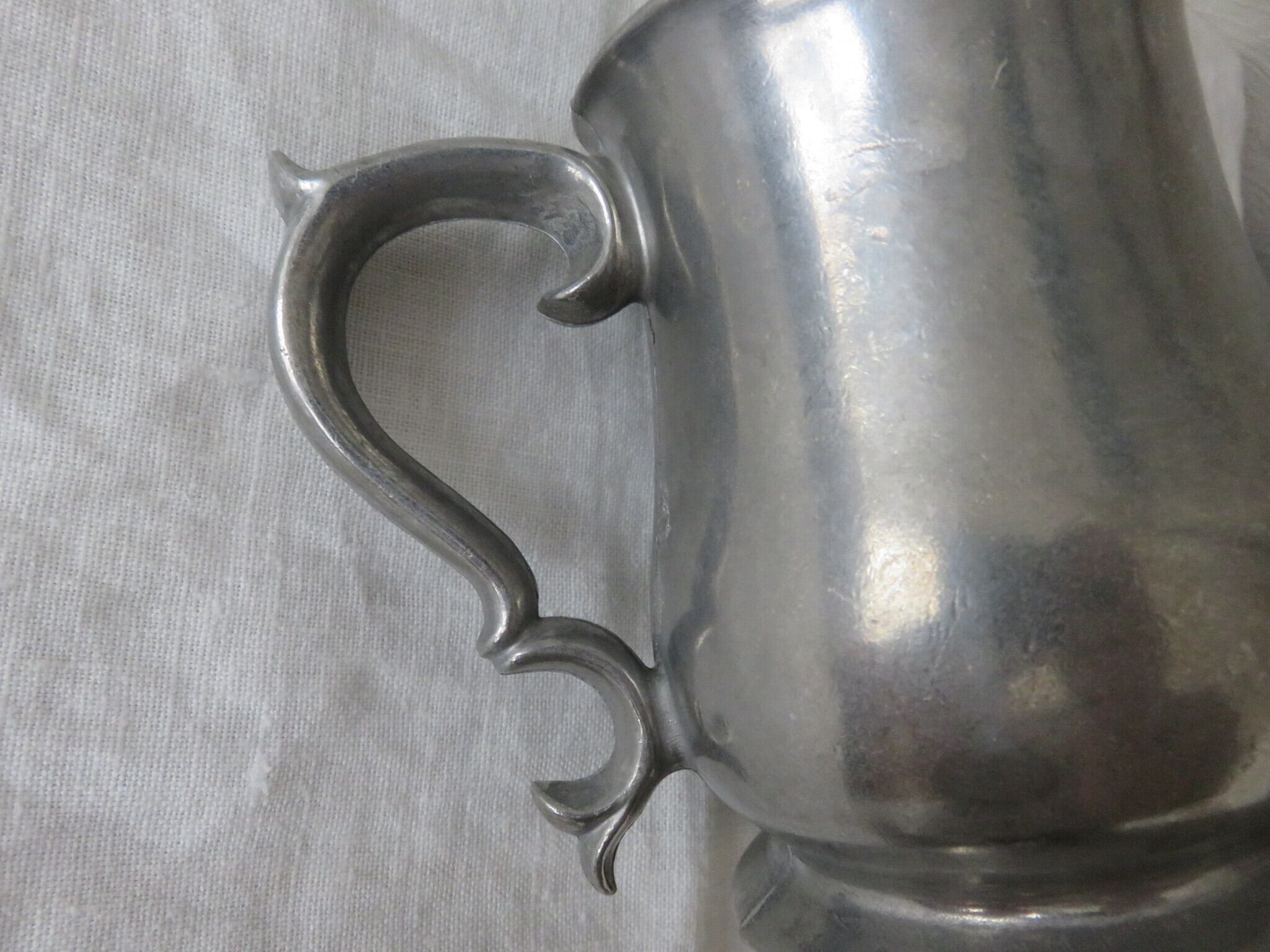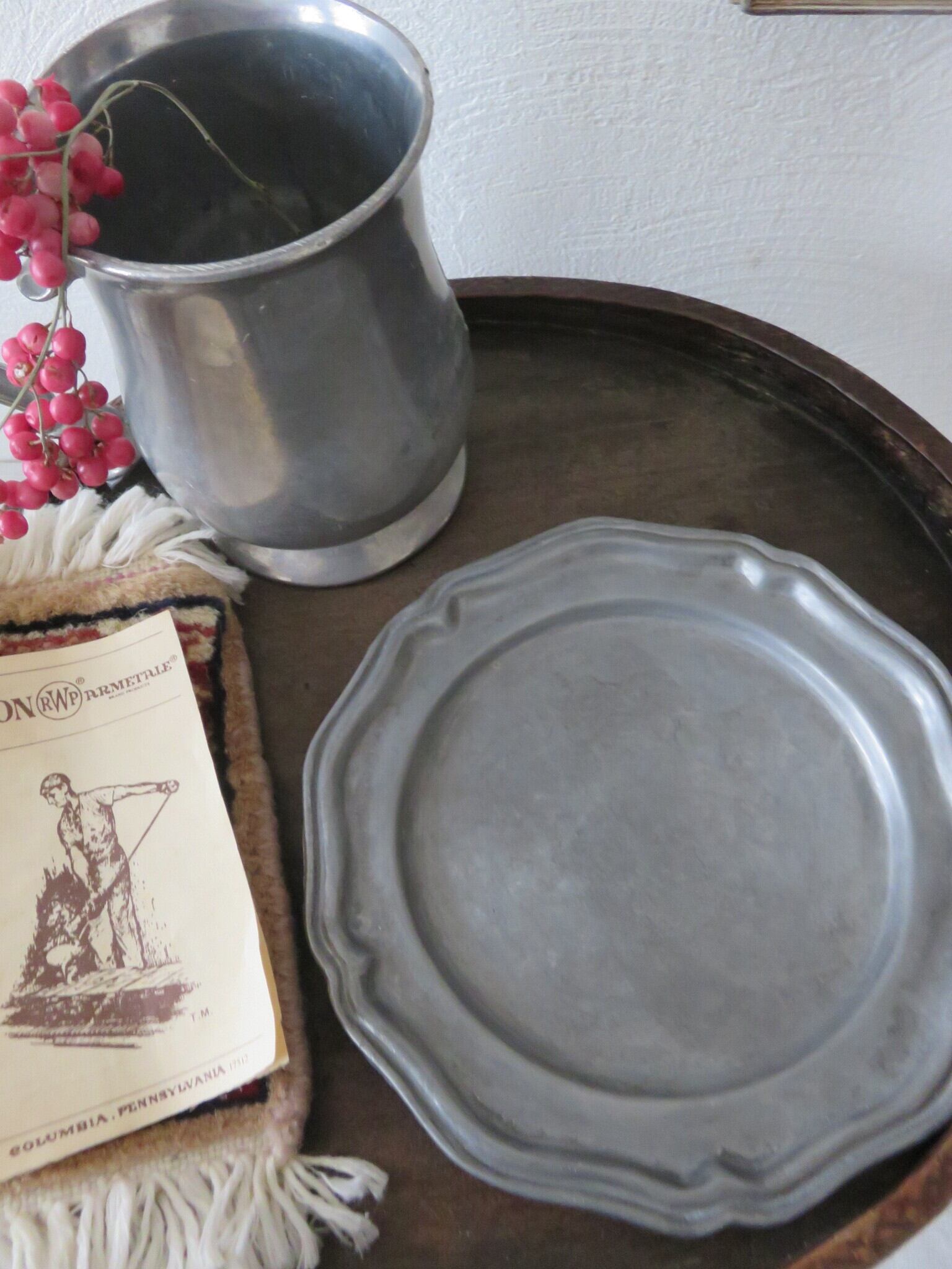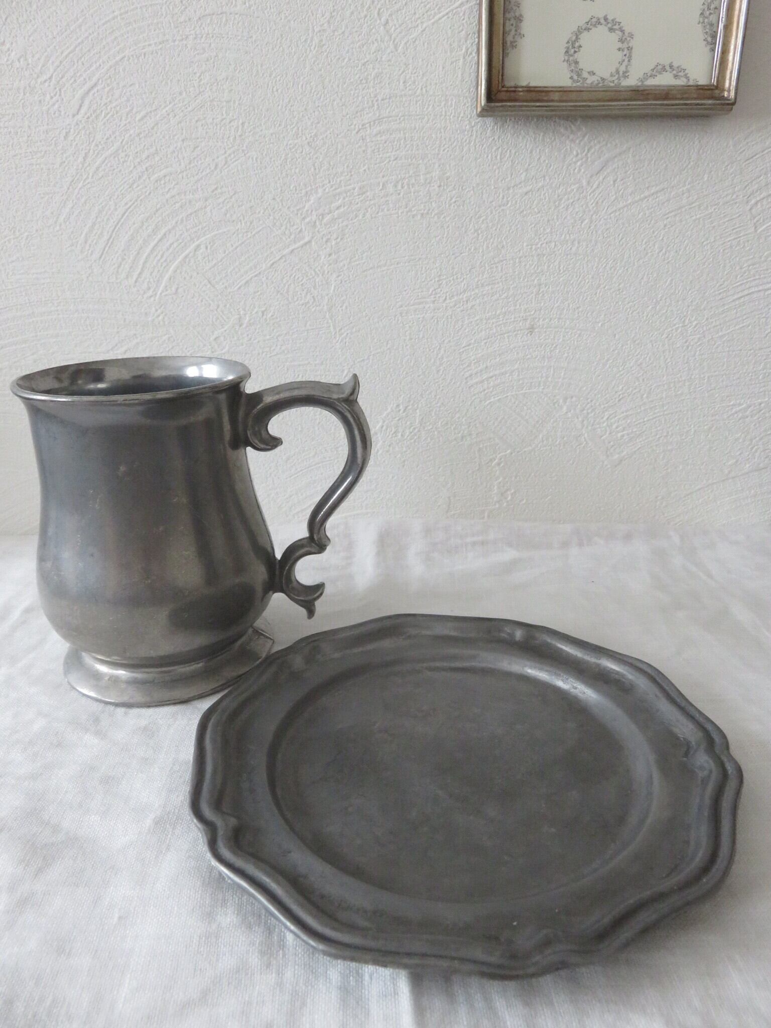 ピューターマグカップの丸みを帯びた形と独特の質感。