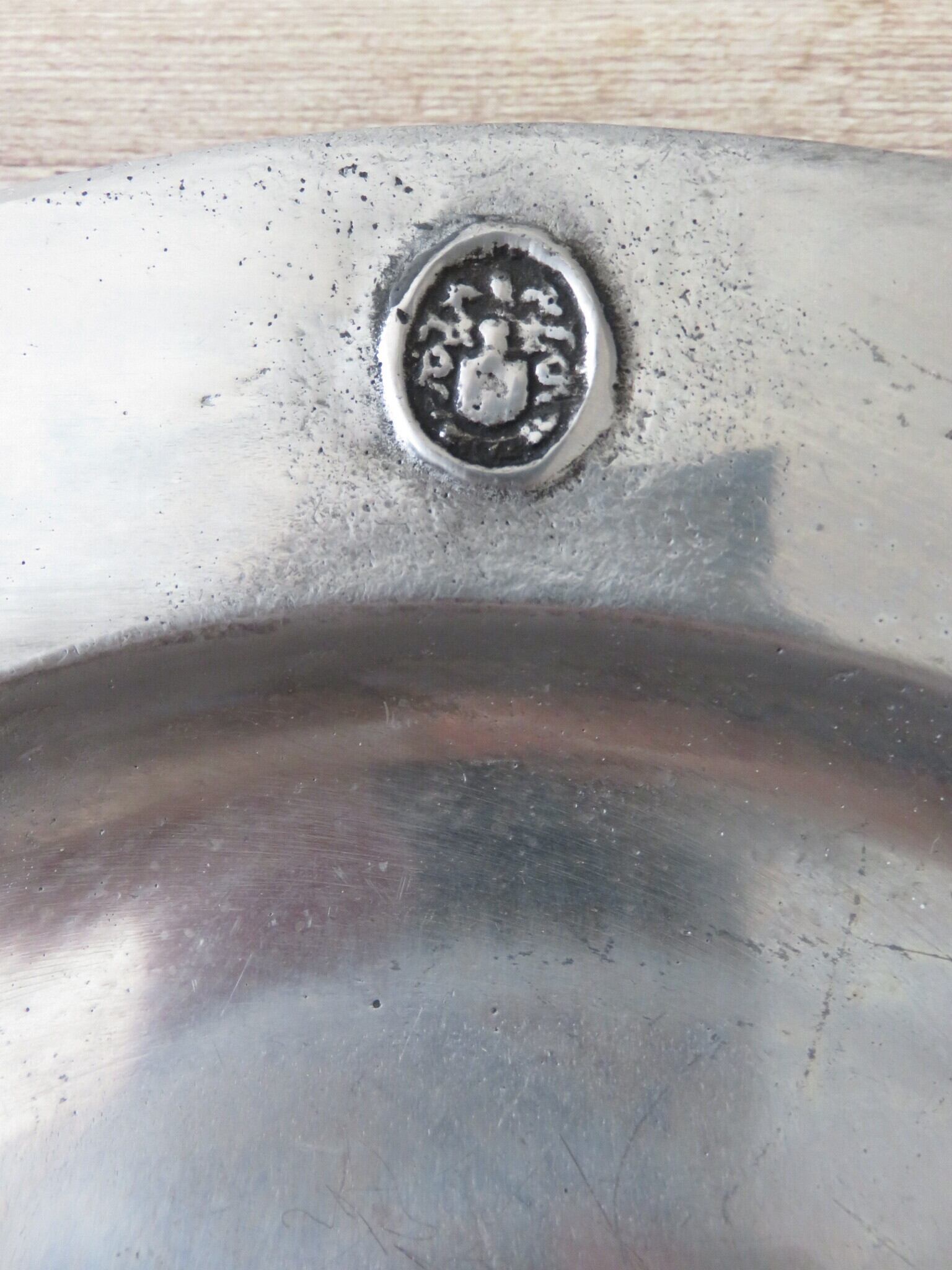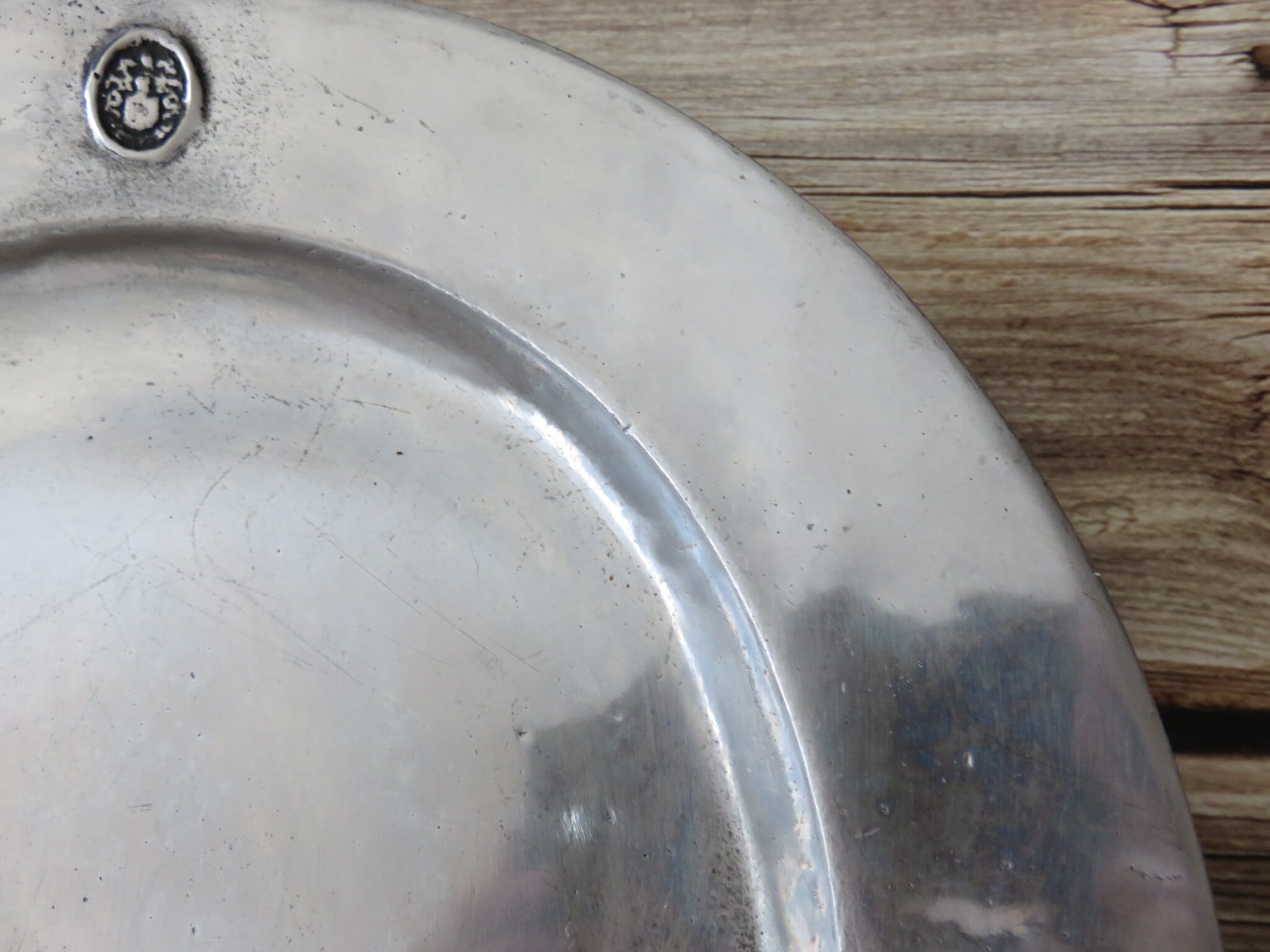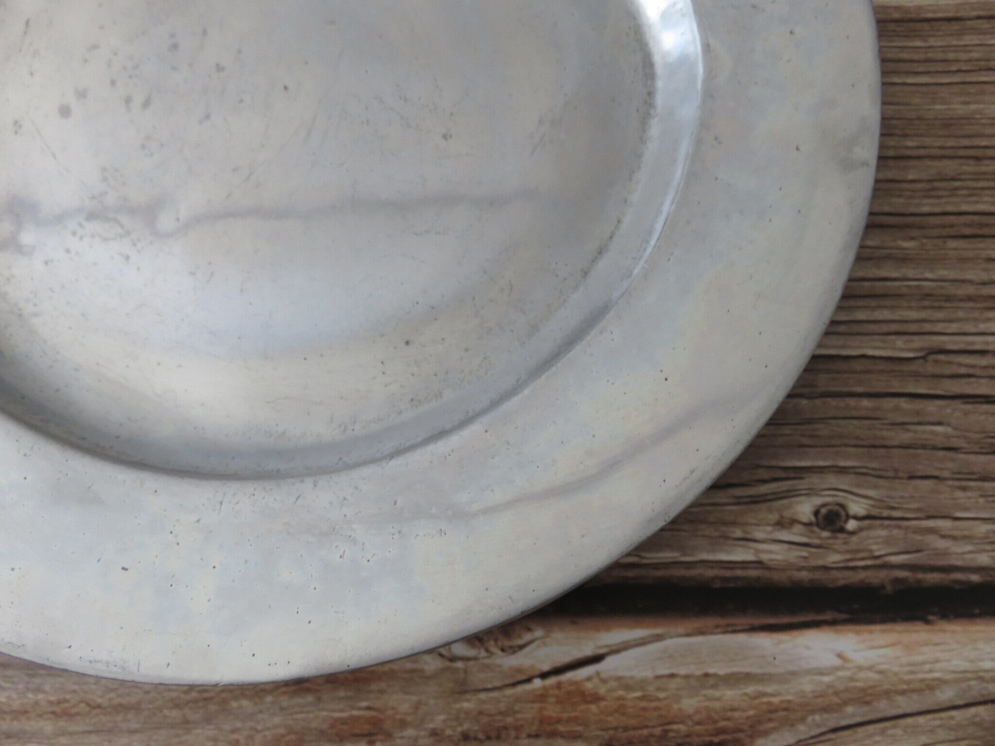 ピューター皿は、年代を経た細かい傷あと・汚れなどが見られます。