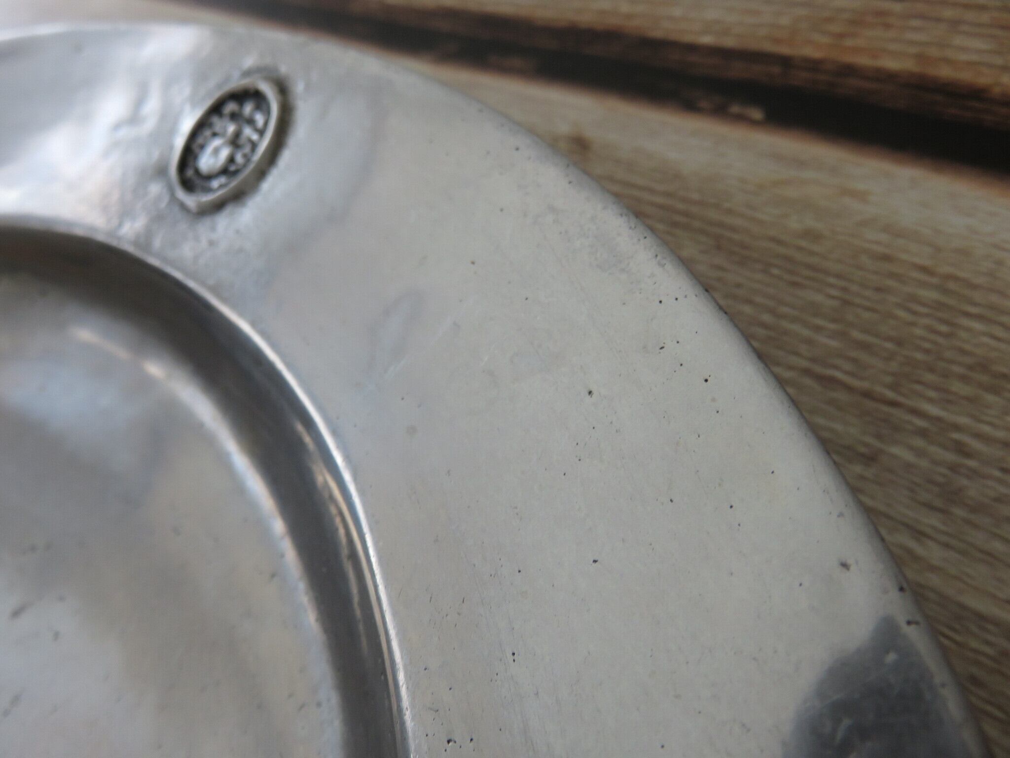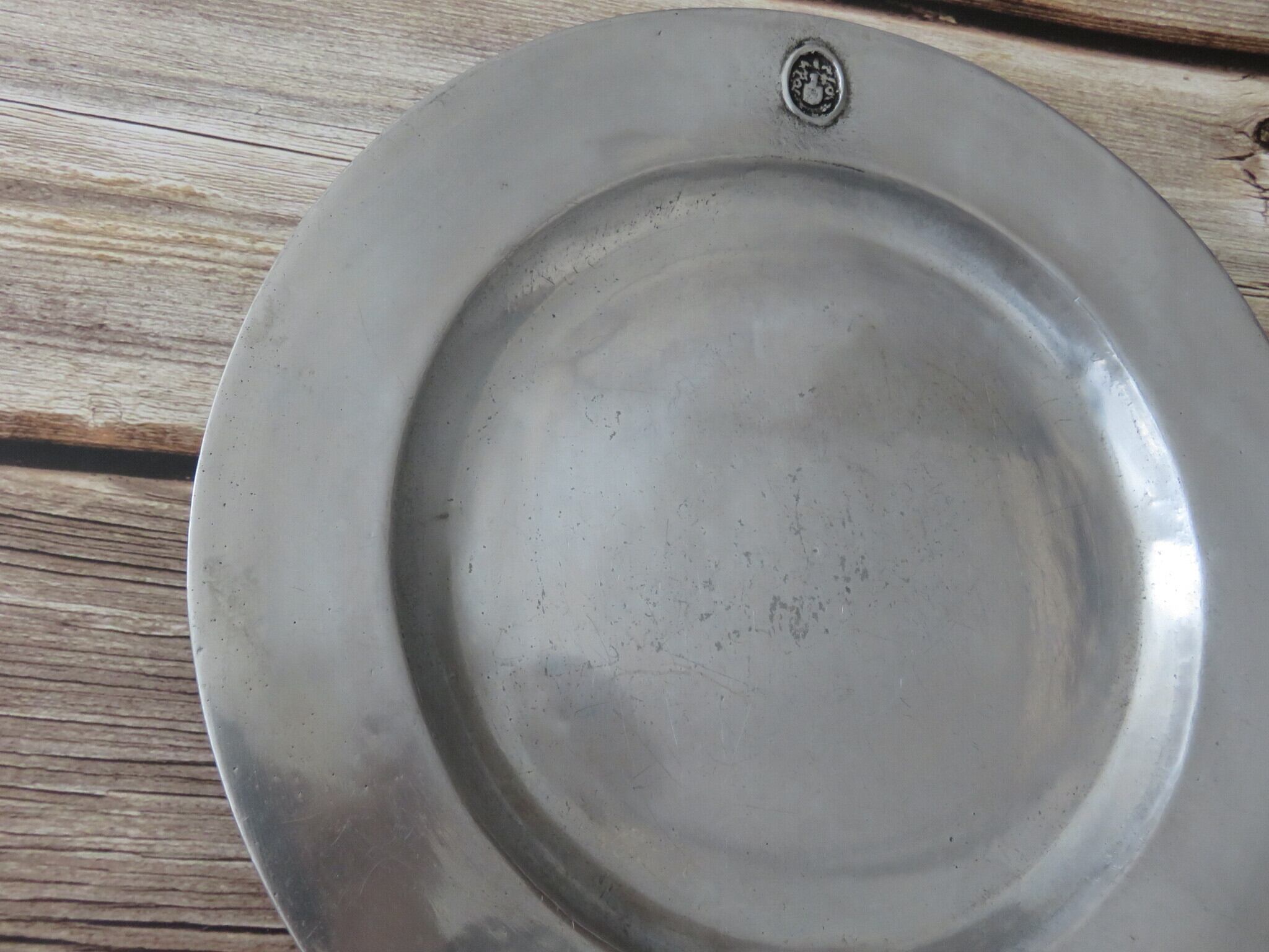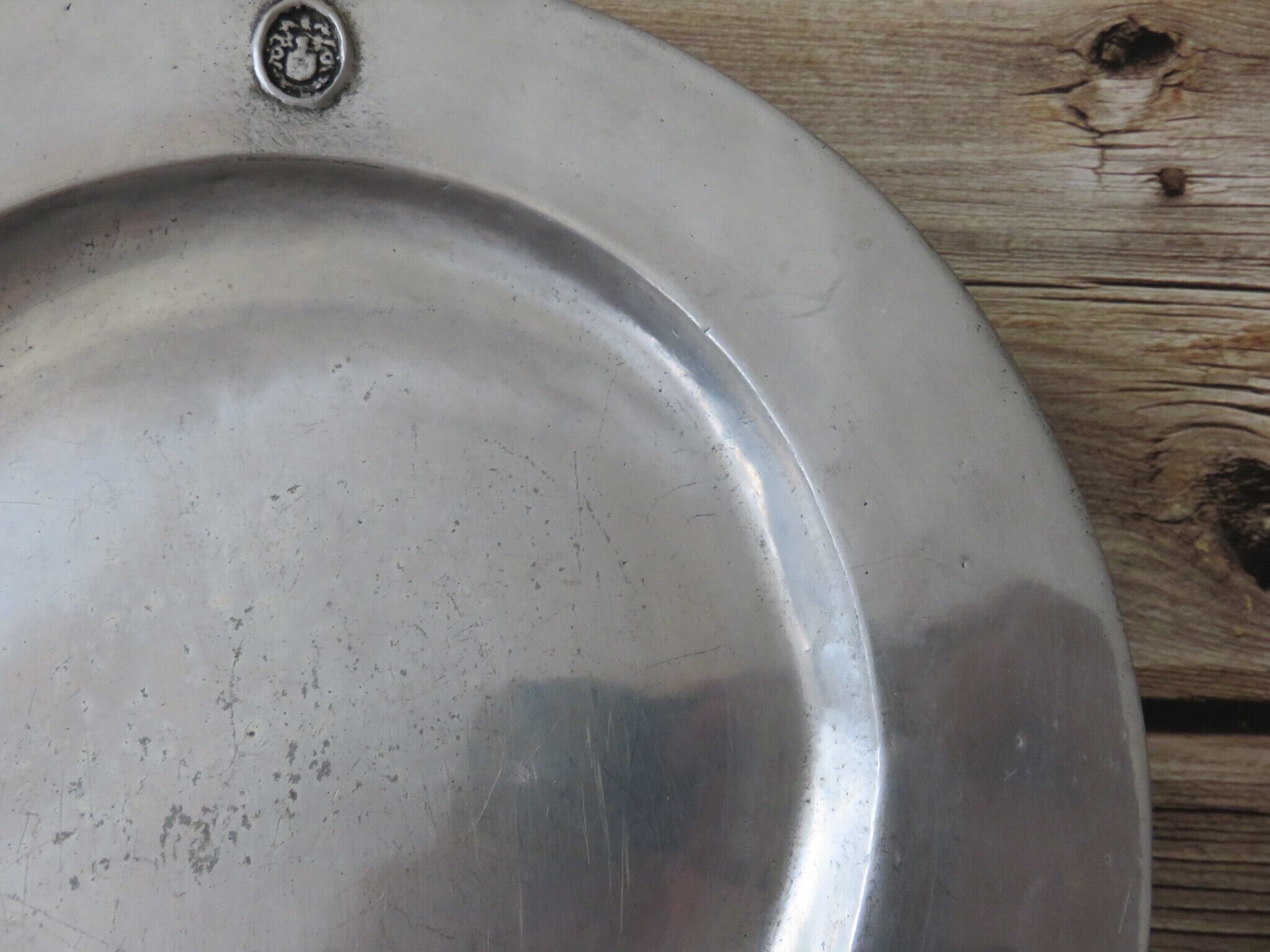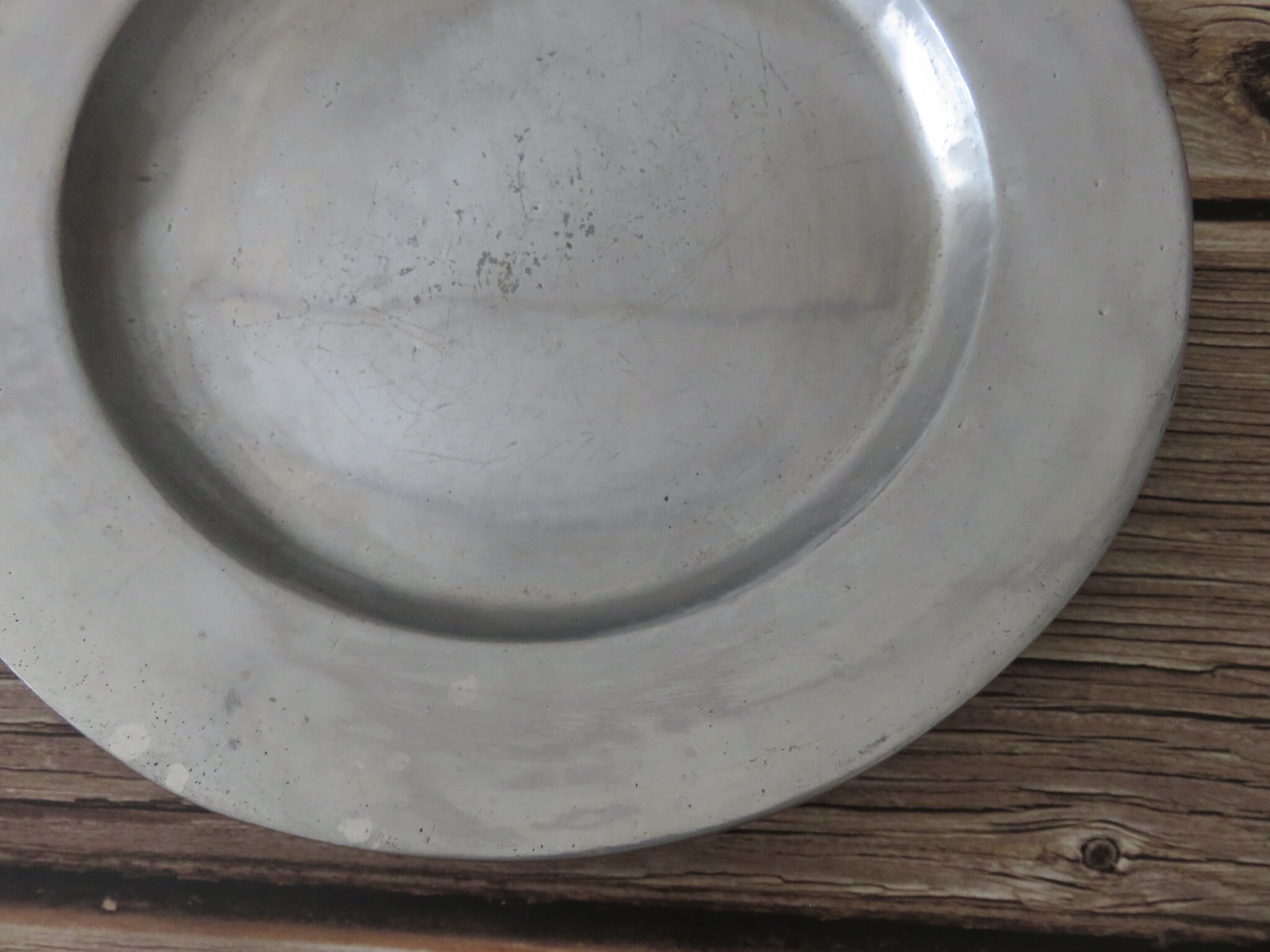 ピューター皿は、年代を経た細かい傷あと・汚れなどが見られます。